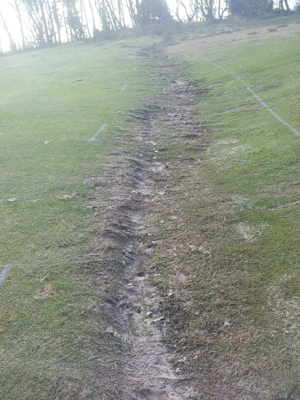 The area in the middle of the third fairway had become a mess due to constant waterlogging, machinery and golf traffic. Therefore we took the opportunity this winter to dig it up and repair it.